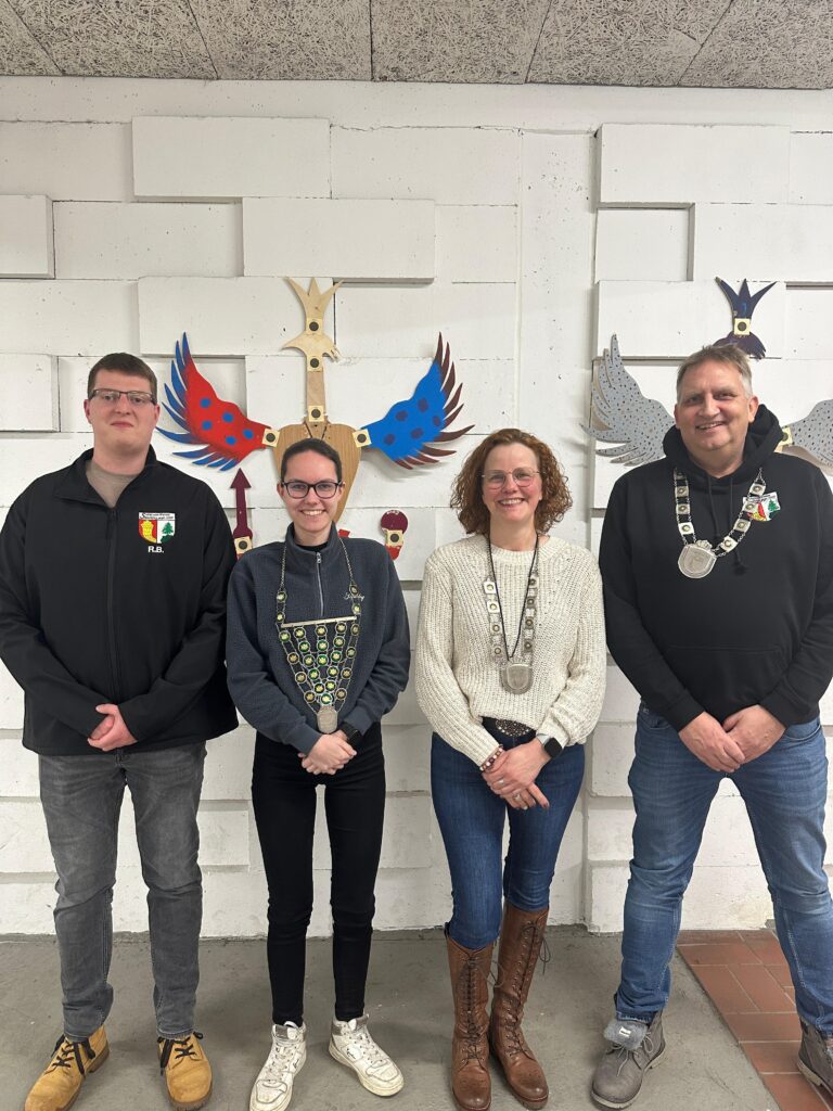 Auch bei den Damen wurde eine neue Vogelkönigin ermittelt. Anja Mählmann (2. v.r.), derzeitige Schützenkönigin des Vereins, bewies ihre Treffsicherheit und schoss den Vogel ab. Sie trägt nun den Titel der Vogelkönigin 2026.